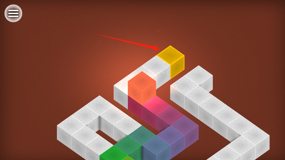 3、空白方块随方块移动自动染色,核心目标为以最少步数抵达终点并染色所有空白方块。