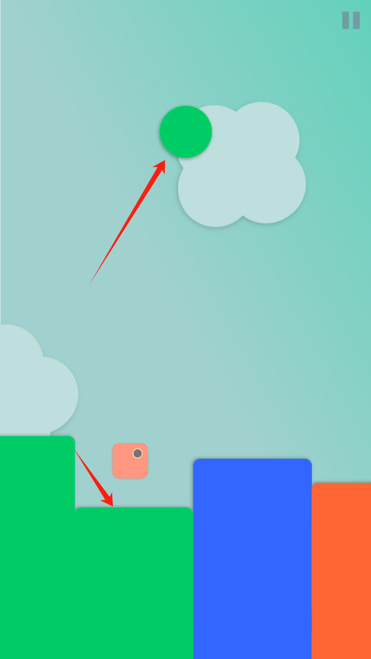 3、小方块最多可以连续跳跃两次,随着关卡进度,小方块可以行走和跳跃的颜色会逐渐增加。