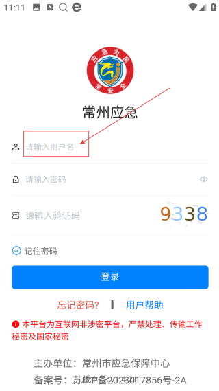 1、在常州应急登录页,先点击【请输入用户名】框,输入对应的账号信息。