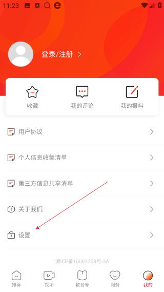 2、在个人中心页,点击【设置】,进入应用的各类设置调整界面。