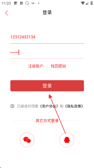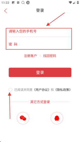 3、在登录页,输入【手机号和密码】,勾选【用户协议】后准备登录。