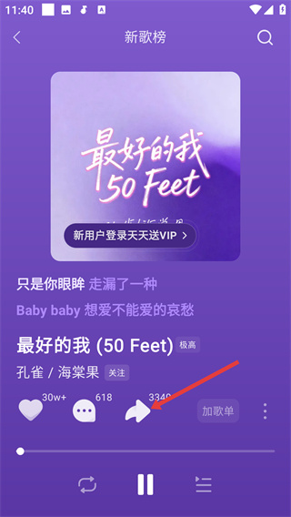 2、在新歌榜歌曲列表中点击目标歌曲,进入歌曲播放页面。
