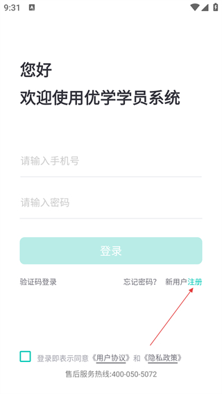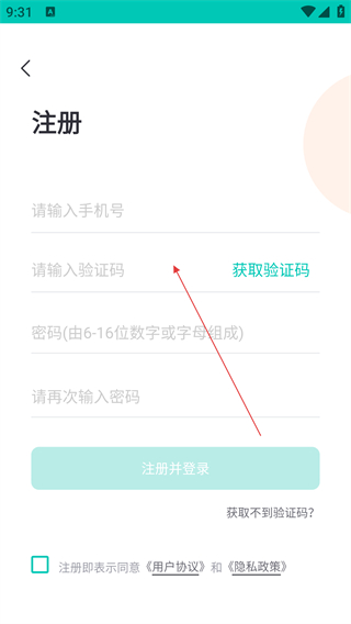 4、依次输入手机号和验证码,再设置密码后,勾选协议后点击【注册并登录】,完成新用户的注册。