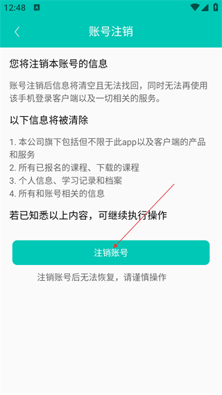 3、在账号注销说明页面,点击【注销账号】按钮。