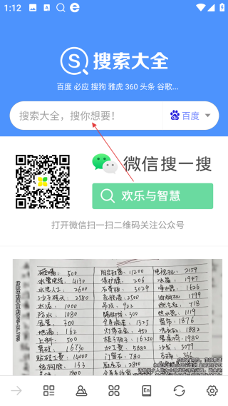 1、在搜索大全页,点击【搜索框】,进入搜索页面。
