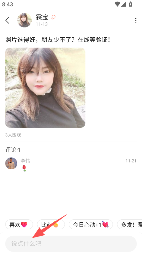 2、看到感兴趣的动态,点击进入详情页,可进行评论互动。