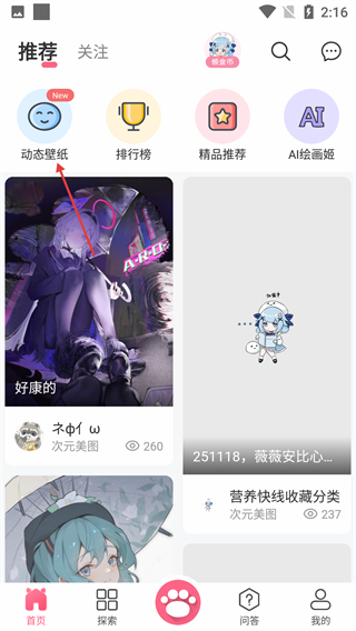 1、在首页点击【动态壁纸】图标,进入动态壁纸页面。