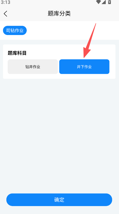 1、进入题库分类,选择钻井作业或井下作业科目,点击确定。