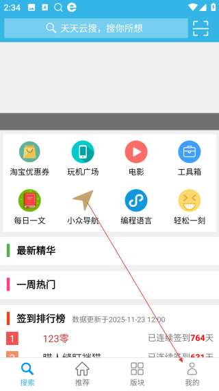 天天云搜是一款资源海量、功能多元的论坛社区兼资源搜索工具,以强大的资源检索为核心特色,支持电影、文档、音乐、教程、小说、动漫等各类资源精准搜索,内容源自多个热门站点,同时搭建了聚集海量用户的优质论坛平台,涵盖电影、动漫、学习、搞笑、斗图、精品工具、休闲灌水等丰富板块。它每日有用户发布实用帖子、分享资源与玩机教程,具备资源推荐、热门分享、网页搜索等功能。