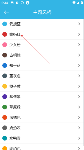 3、在主题风格页,选择【喜欢的颜色】选项,应用对应的主题样式。