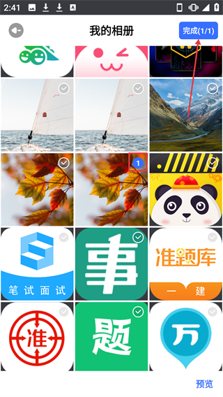3、在我的相册中选择所需图片后,点击【完成(1/1)】即可完成图片选择操作。
