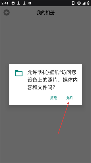 2、当弹出允许“甜心壁纸”访问设备照片、媒体内容和文件的提示时,点击【允许】以继续操作。