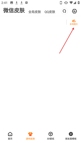 1、在微信皮肤界面,点击【本地图片】可选择本地图片设置皮肤。