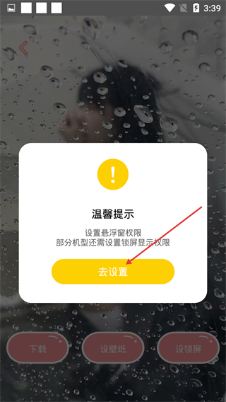 4、在温馨提示弹窗中点击【去设置】按钮,完成相关权限配置。