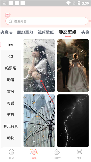 2、在分类页面点击【静态壁纸】分类,选择喜欢的壁纸。
