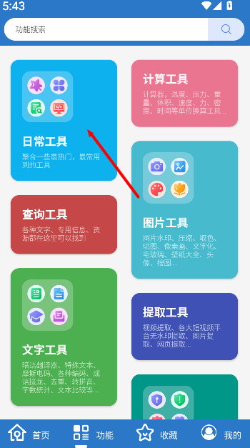 1、进入首页功能板块,浏览各类工具分类,找到所需的实用功能入口。