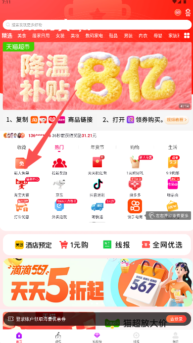 1、在首页点击顶部“新人免单”活动入口进入活动页面。