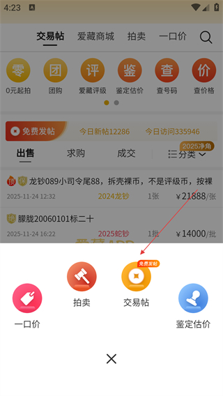 3、选择【交易帖】选项,进入交易帖发布界面。