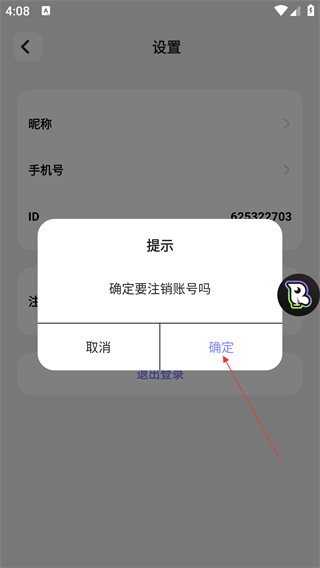 4、在提示弹窗中,点击【确定】按钮,即可完成账号注销操作。