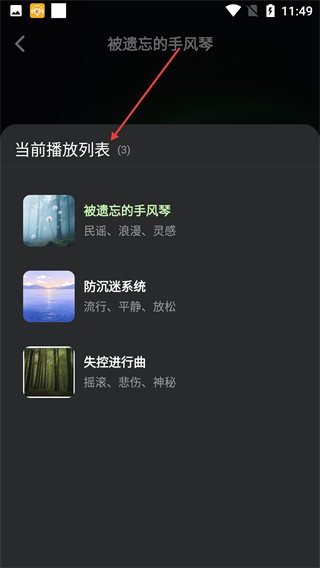 4、点击后即可查看【当前播放列表】中的曲目内容。
