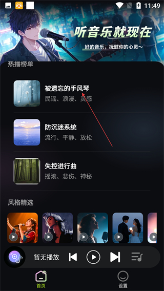 2、在应用首页的热播榜单里,点击【被遗忘的手风琴】条目进入其播放页面。