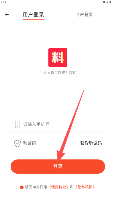 1、在登录界面输入手机号获取验证码后点击“登录”按钮完成。
