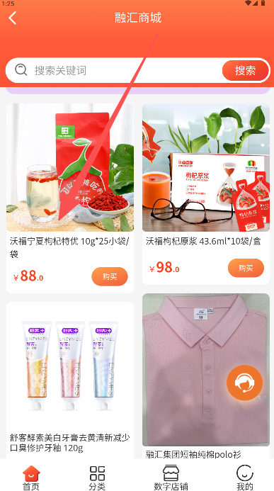1、在首页点击“数字生活”图标进入商城。