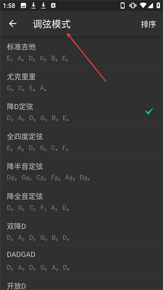 4、进入【调弦模式】列表页面,选择所需的调弦模式。