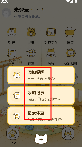 1、支持健康记录、喂养提醒、成长管理等常用功能,适应多类养宠场景。