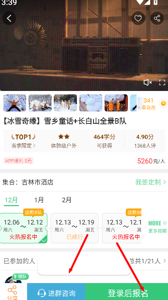 3、可先加入咨询群获取更多信息,或在登录后直接进行报名操作完成预订。