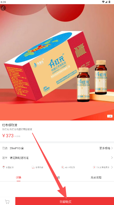 3、选择目标食品确认规格后点击“立即购买”完成下单。