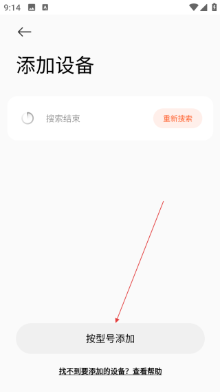3、在添加设备页,点击【按型号添加】选项,进入设备型号选择页面。
