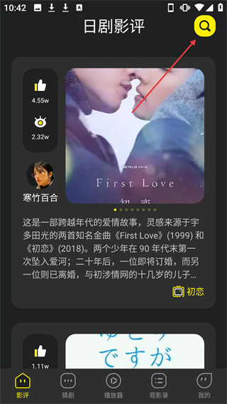 1、在日剧影评页面点击右上角的搜索按钮,即可进入搜索页面。