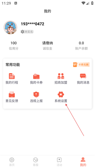 2、在个人中心页面,选择【系统设置】选项,进入应用的设置界面。