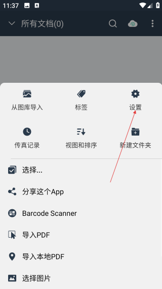 2、在弹出菜单中,选择【设置】选项,进入软件的设置功能页面。