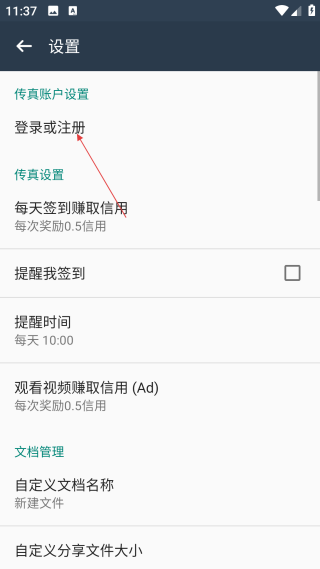 3、在设置页点击【登录或注册】选项,进入账号的登录注册界面。