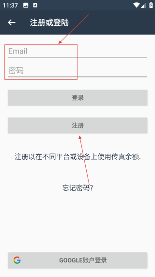 4、在注册或登陆页,填写【Email与密码】,点击【注册】即可完成注册操作。
