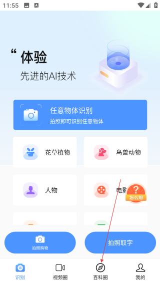 1、在体验页,点击底部【百科圈】选项,进入百科圈的内容浏览界面。