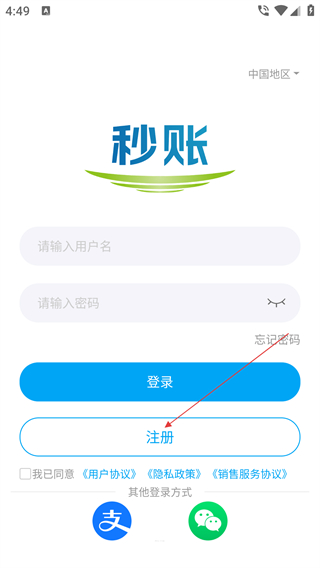 2、在登录界面点击【注册】,可进入秒账的注册信息填写页面。