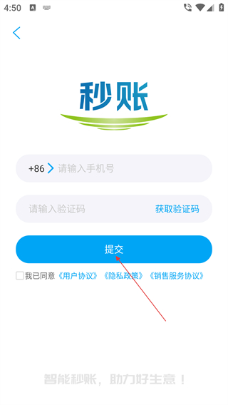 3、在注册页填写手机号与验证码,勾选协议后点击【提交】推进注册流程。