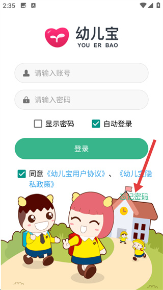 1、在“成长互动”页面点击【进入】按钮,进入幼儿宝的登录页面。