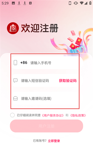 4、在【欢迎注册】页面填写【请输入手机号】【请输入短信验证码】等信息,勾选相关协议后可完成注册。