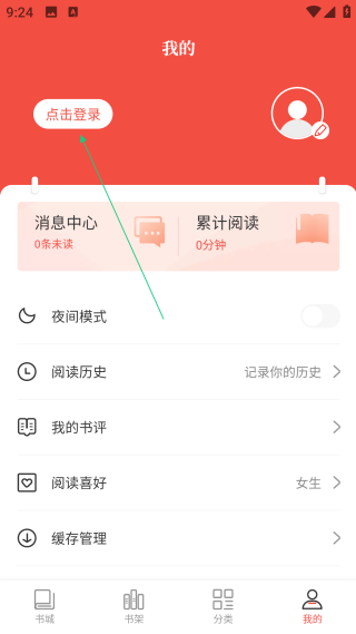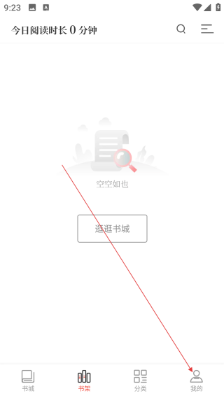 1、在书架页,点击底部【我的】选项,进入个人中心的功能界面。