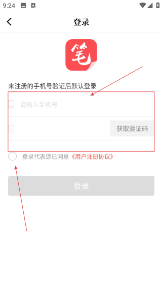 3、在登录页【填写手机号与验证码】,勾选【用户注册协议】相关选项。