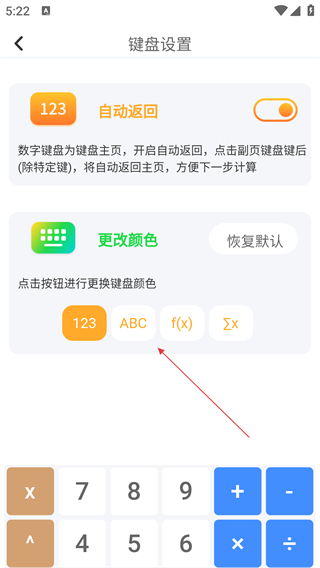 4、在键盘设置页可调整“自动返回”功能,或通过“更改颜色”按钮修改键盘配色。