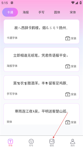 1、系统会根据用户的浏览历史与收藏记录,智能推荐匹配其偏好的字体样式与壁纸内容,帮助用户更高效地发现喜欢的个性化资源。