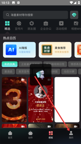1、在模板页,点击底部【我的】选项,进入个人中心的功能操作界面。