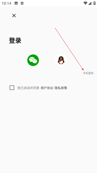 3、在登录页,选择【手机登陆】,进入账号的手机登录操作界面。