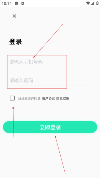 4、在登录页【填写手机号与密码,勾选协议】后点击【立即登录】即可完成登录操作。