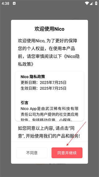 1、在应用欢迎页点击【同意并继续】按钮,进入登录界面。